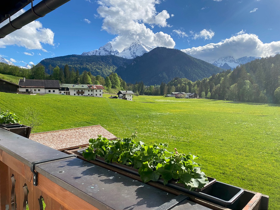 Genießen Sie von den großzügigen Balkonen jeder unserer Ferienwohnungen den phantastischen Blick zum Watzmann.
