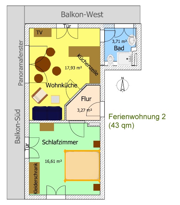43 qm | 2 Personen | 1 SZ | helle Top-Whng. für 2